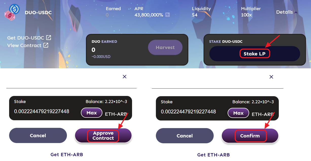 4. **Come back to Monopoly Finance and click 'Stake LP'**